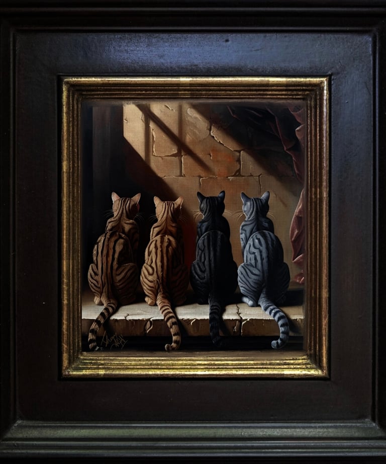 39 x 34 x 0.8 oil on canvas, layered on sealed canvas, framed in wood, click to see more info-